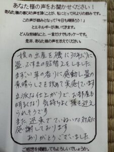 「娘の出産を機に30年ぶりに畳、ふすまの貼替えをしました。