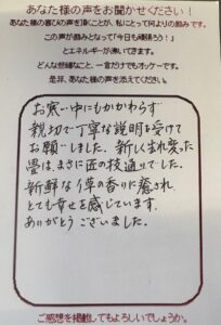 匝瑳市にお住まいの鈴木様よりお客様の声が届きました。