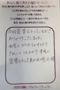 匝瑳市にお住まいのI様よりお客様の声が届きました。