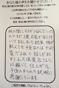 東庄町にお住まいの多部田様よりお客様の声が届きました。