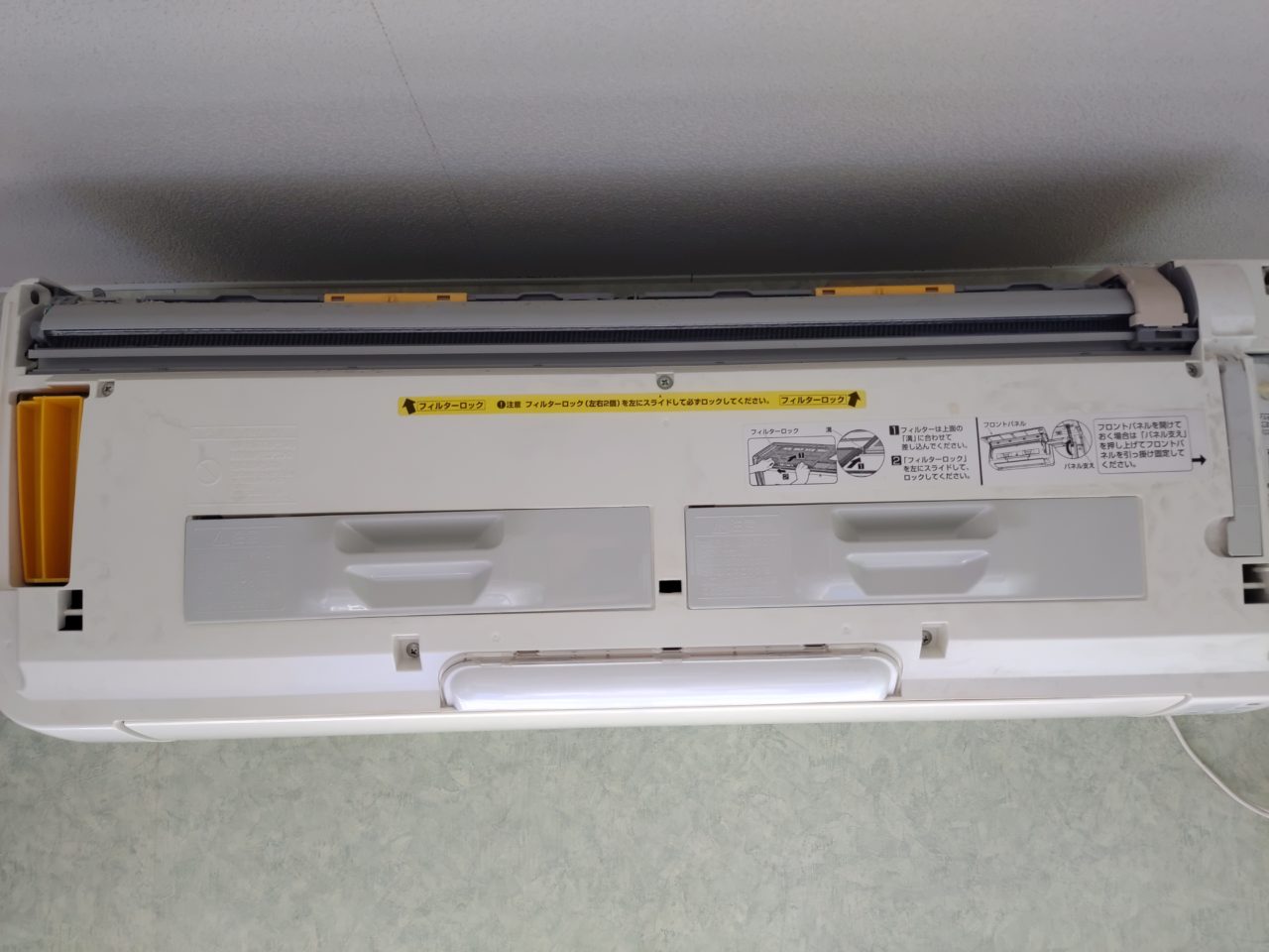 エアコンの設置場所が天井や横の壁に隙間がない場合、このカバーを外すことができないことがあります。