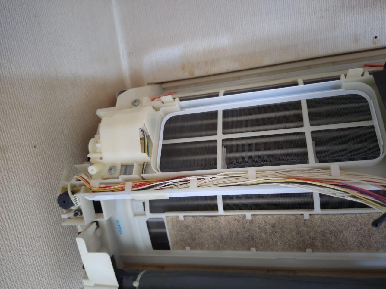 エアコンクリーニングをする際は、本体のカバーを外し分解します。