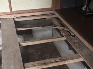 – 畳の下の床板も侵食されている