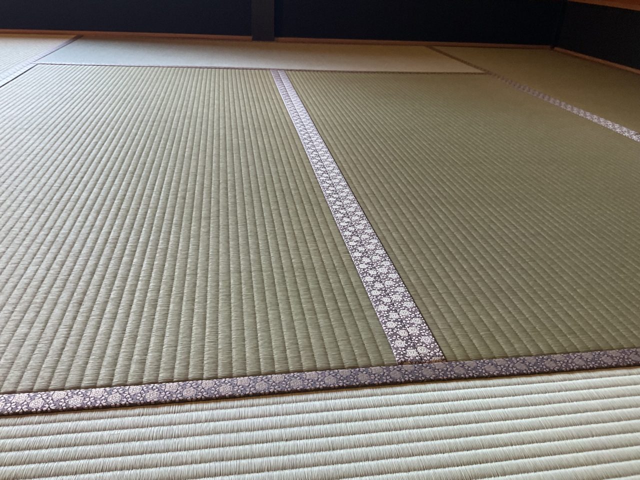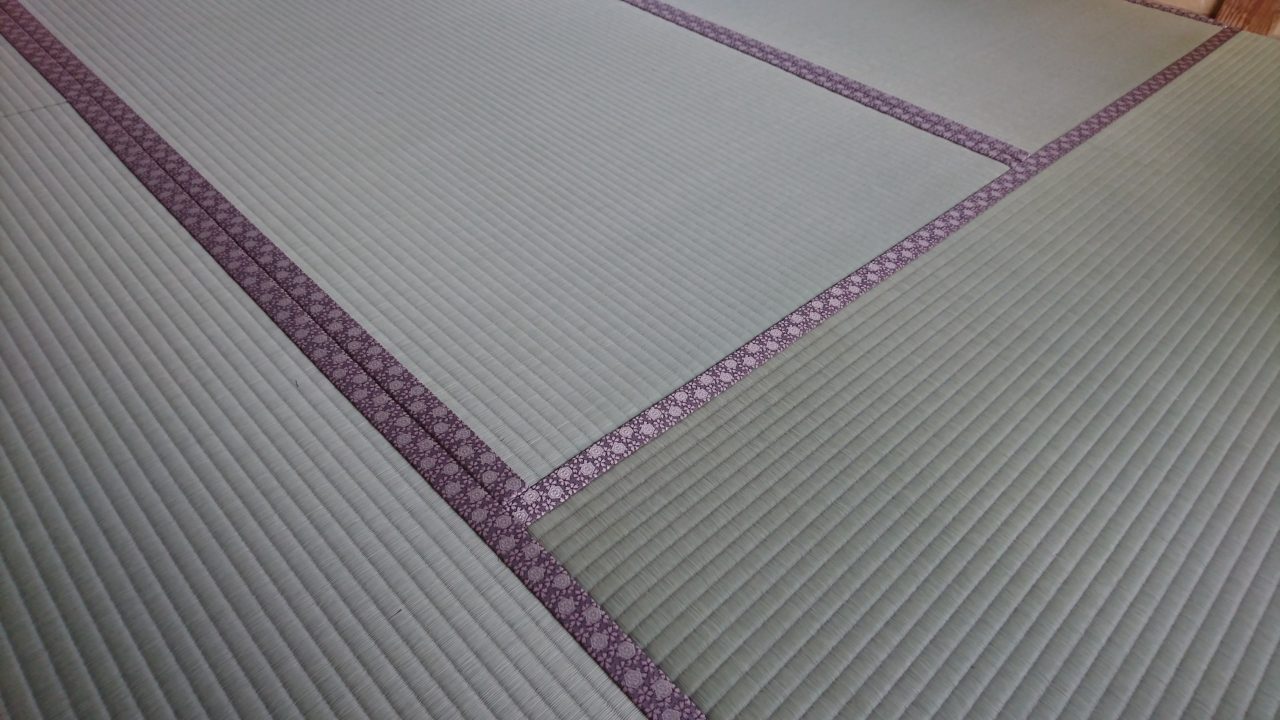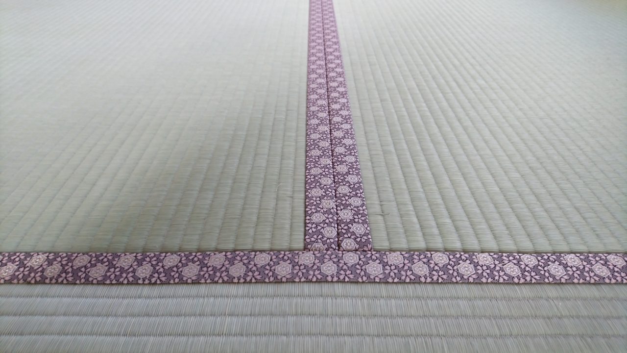 色合いが濃い畳縁で、賑わいと華やかさを感じる畳空間を楽しめます。