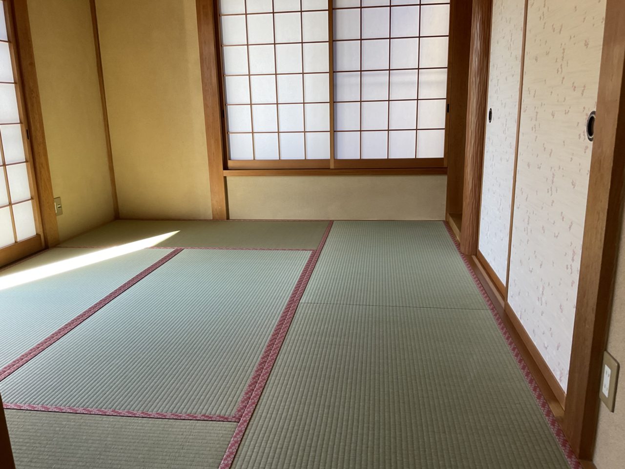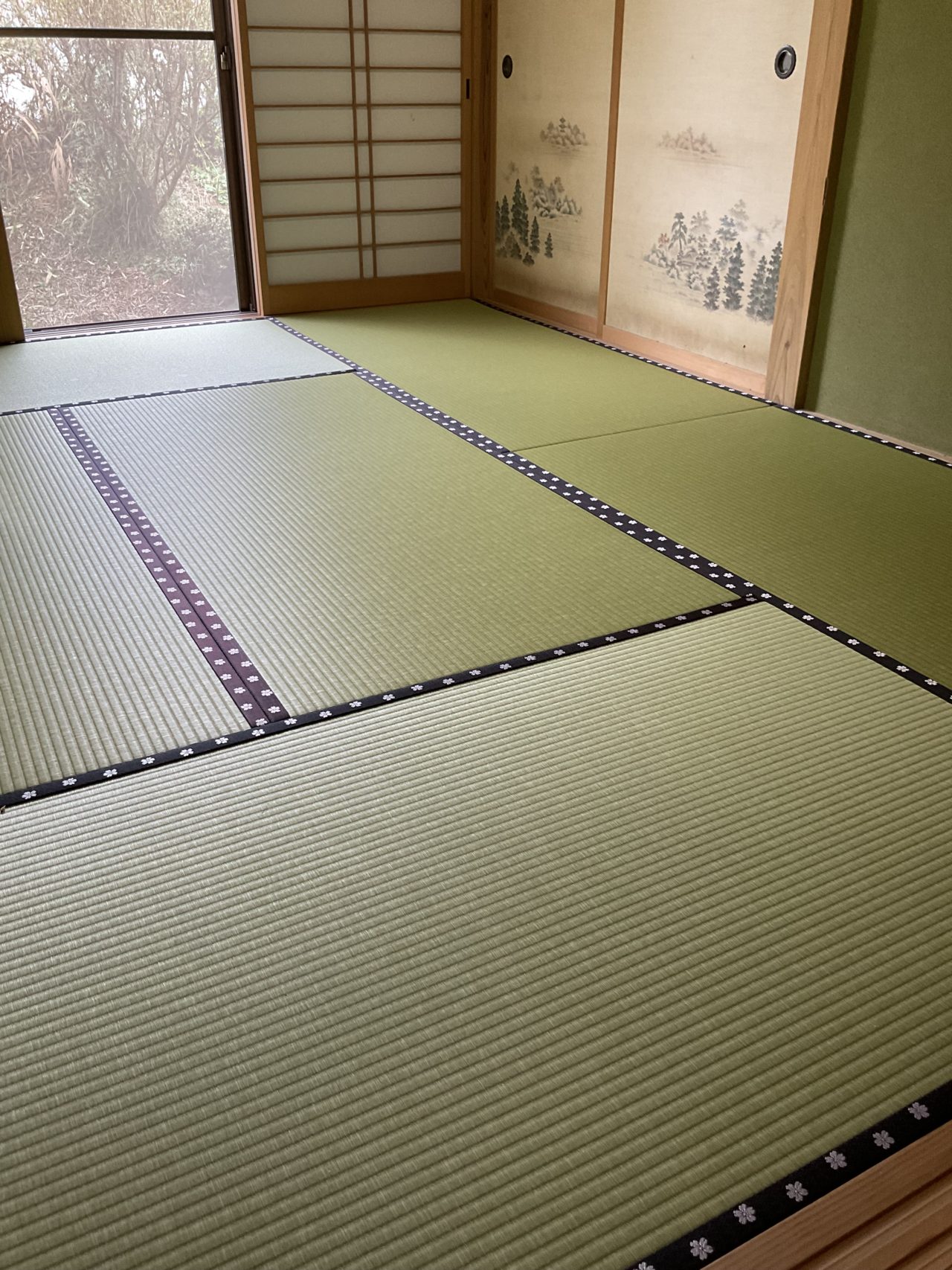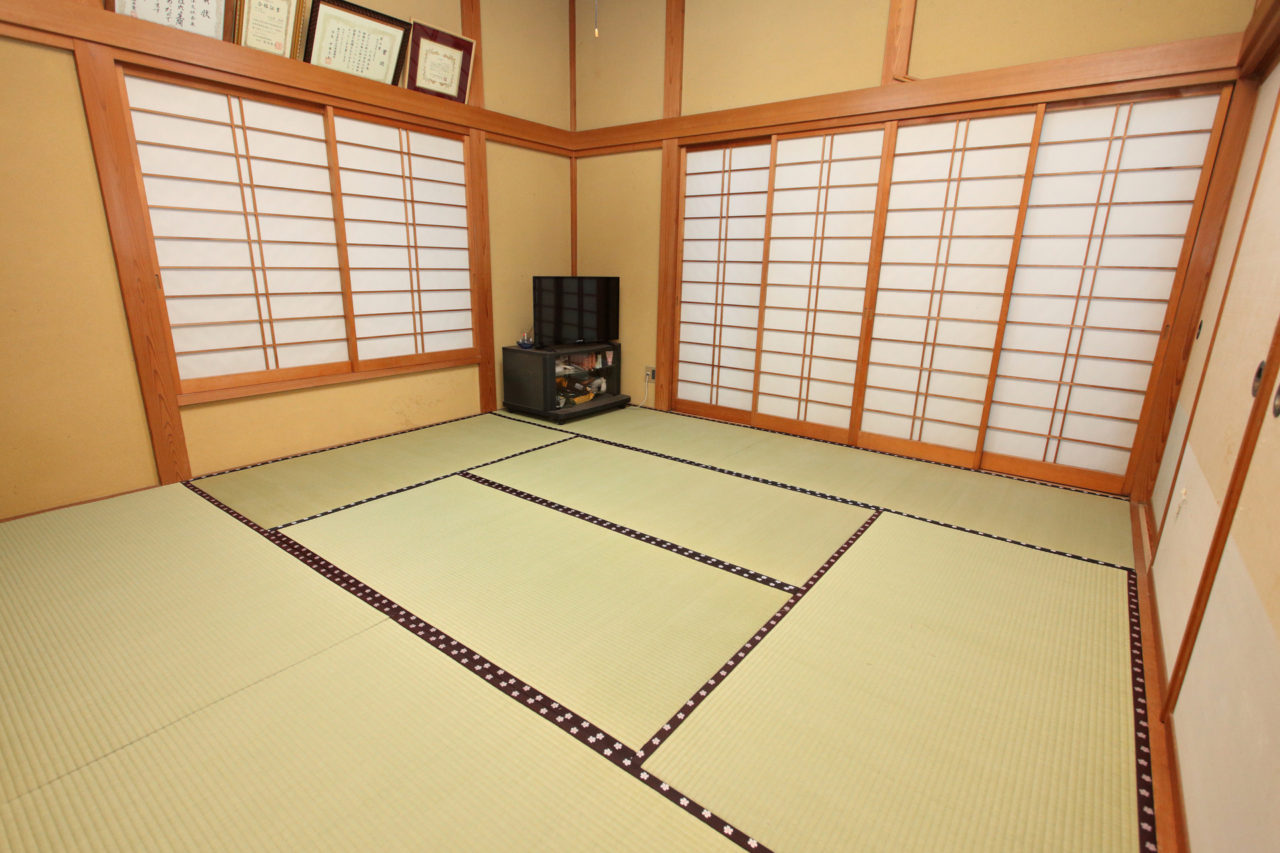 色合いが濃い畳縁で、賑わいと華やかさを感じる畳空間を楽しめます。