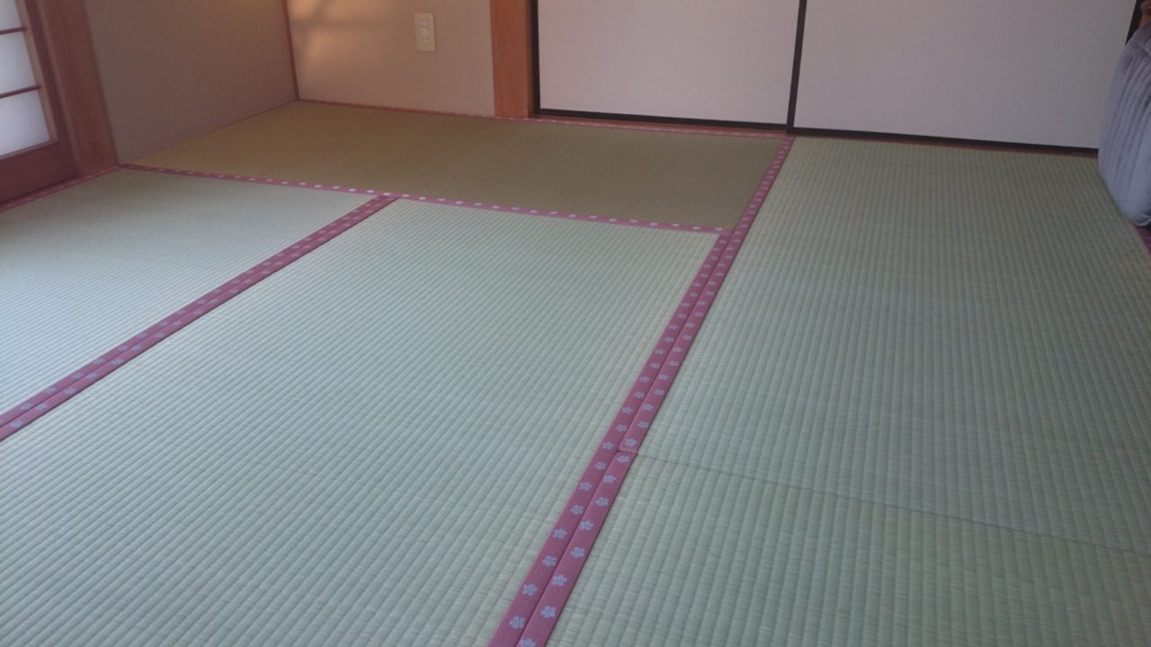 畳縁というと黒や濃い緑色などで渋いイメージがありますが、今は花柄やキャラクターデザインの畳縁もたくさんあり、和室を自分好みのお部屋に変えることができます。